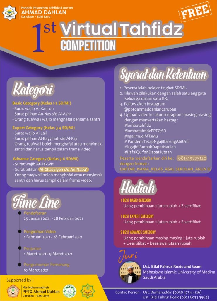 Segera daftarkan putra putri anda di event PPTQ Ahmad Dahlan dalam 1st Virtual Tahfidz Competition.