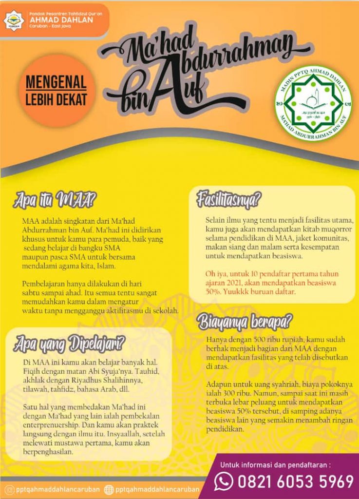 * Khusus untuk tahun ajaran 2021 akan mendapatkan beasiswa 50 %