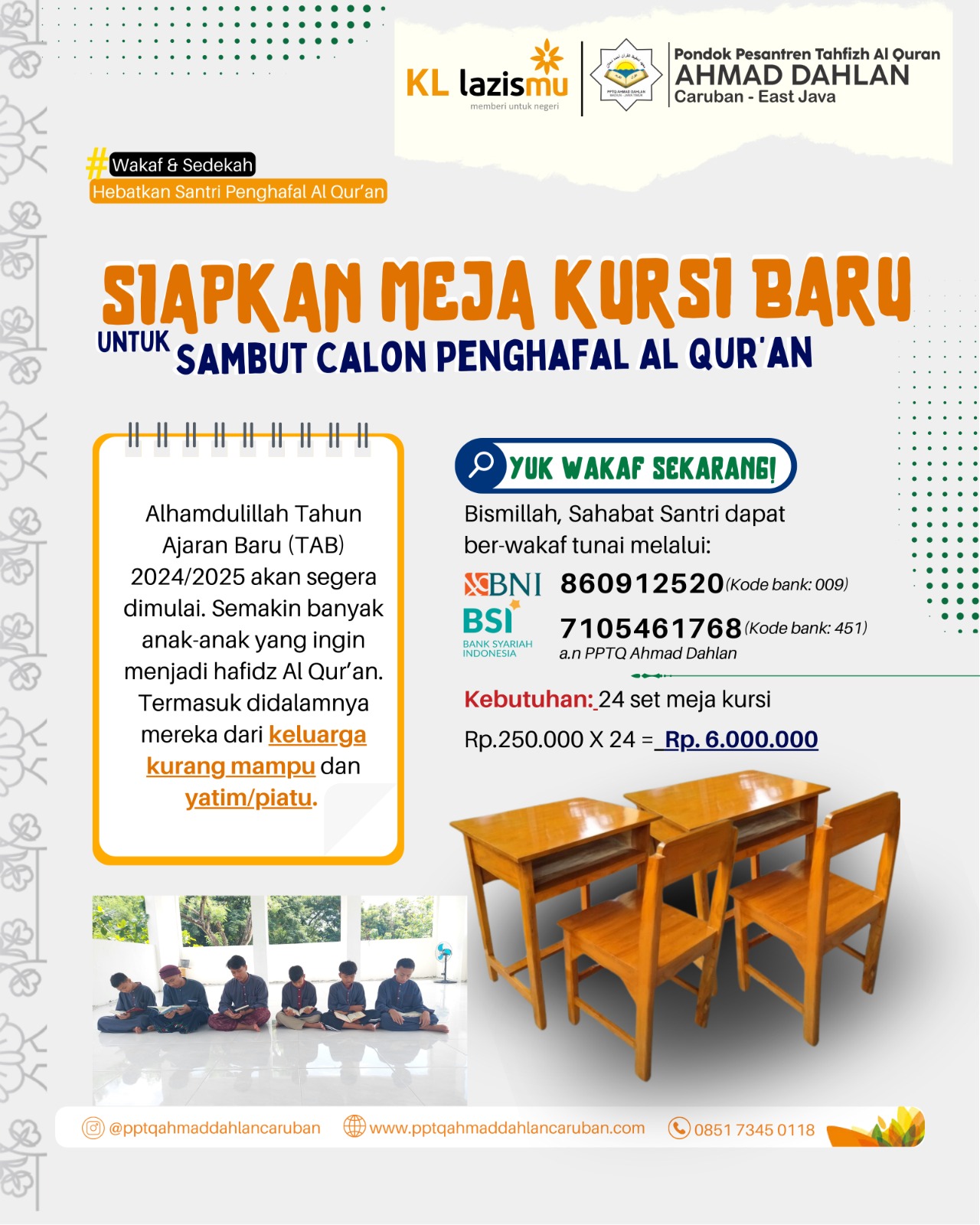 250.000 x 24 (Santri) = Rp. 6.000.000